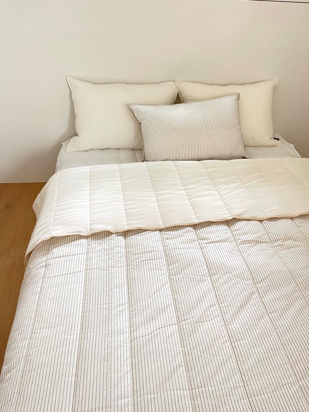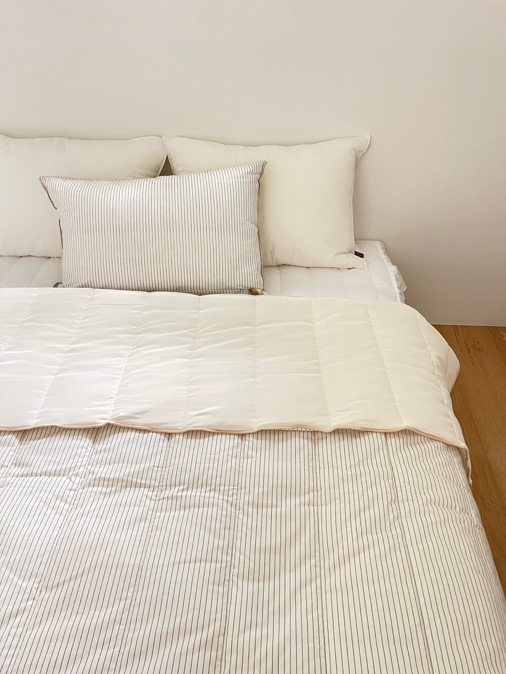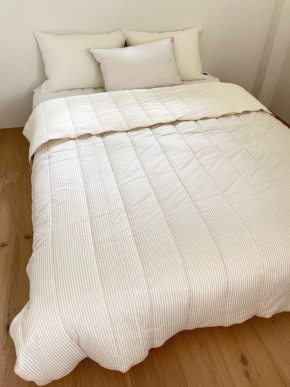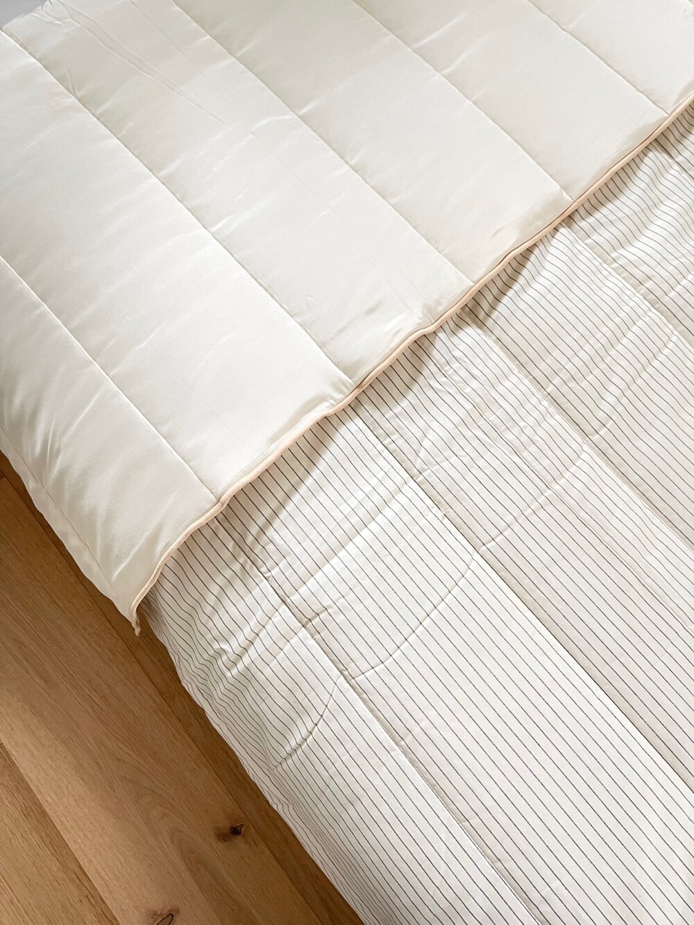 인견+스트라이프 순면 차렵이불