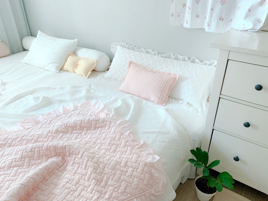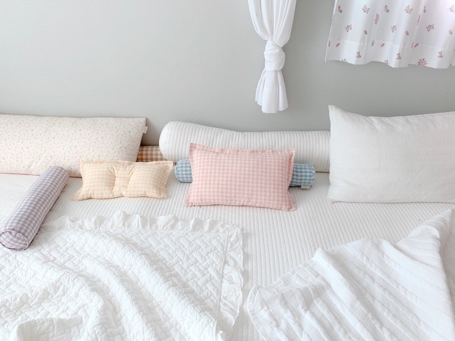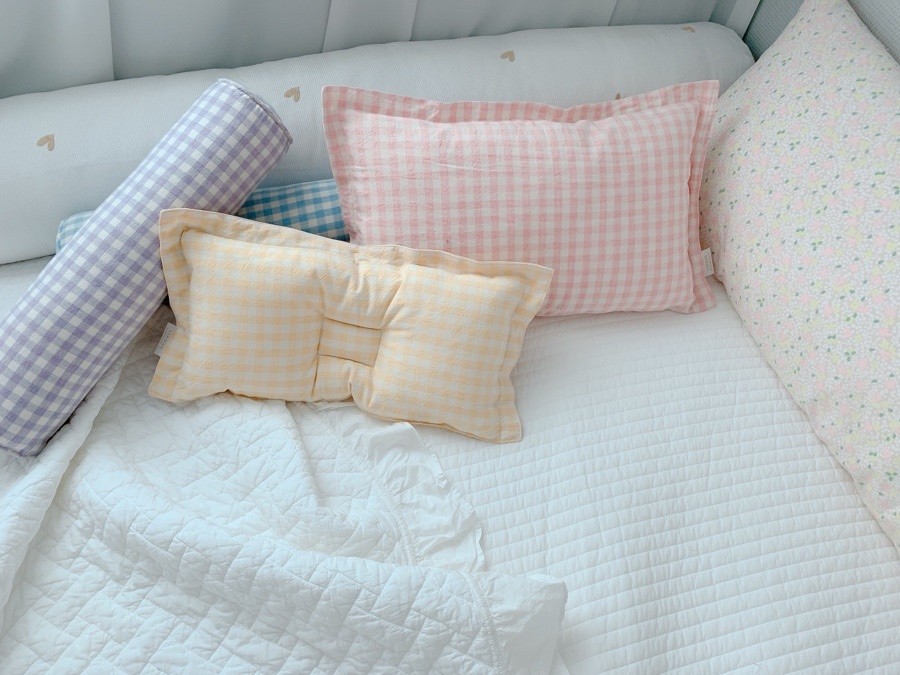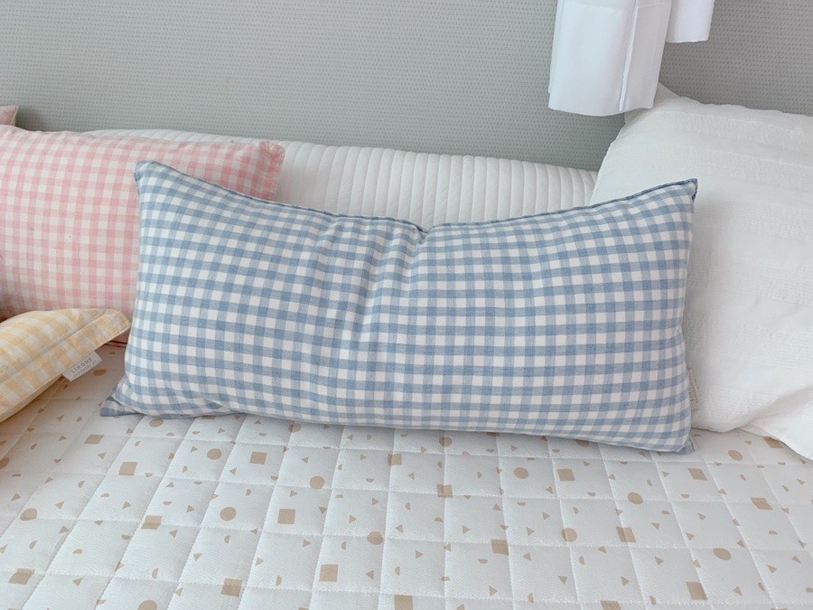 파스텔 색감이 참 예쁜 체크 베개 쿠션 커버 입니다.