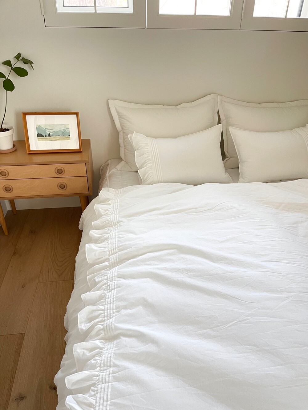 예쁜 프릴과 핀턱이 있어 신혼침구로도 추천드려요~
