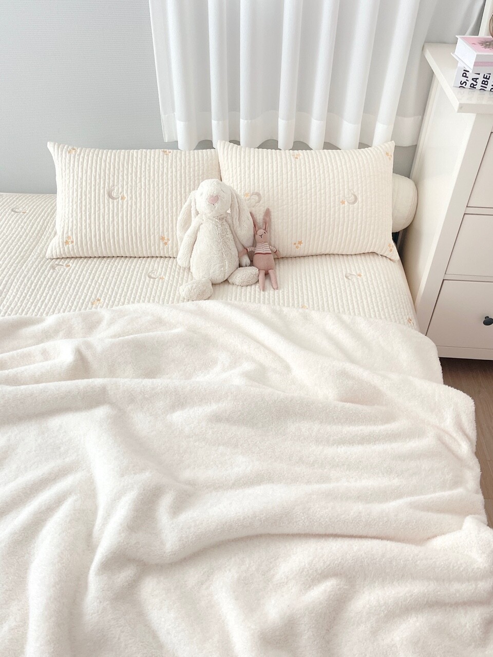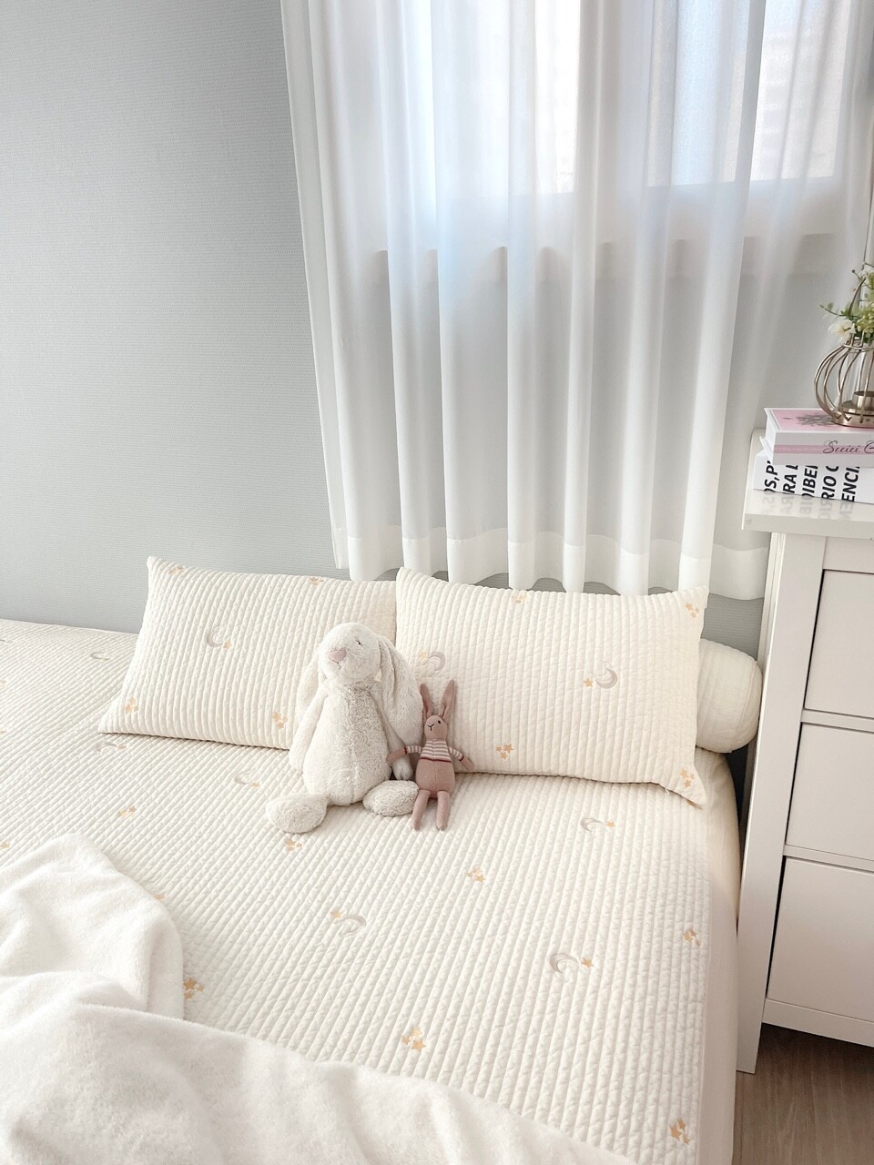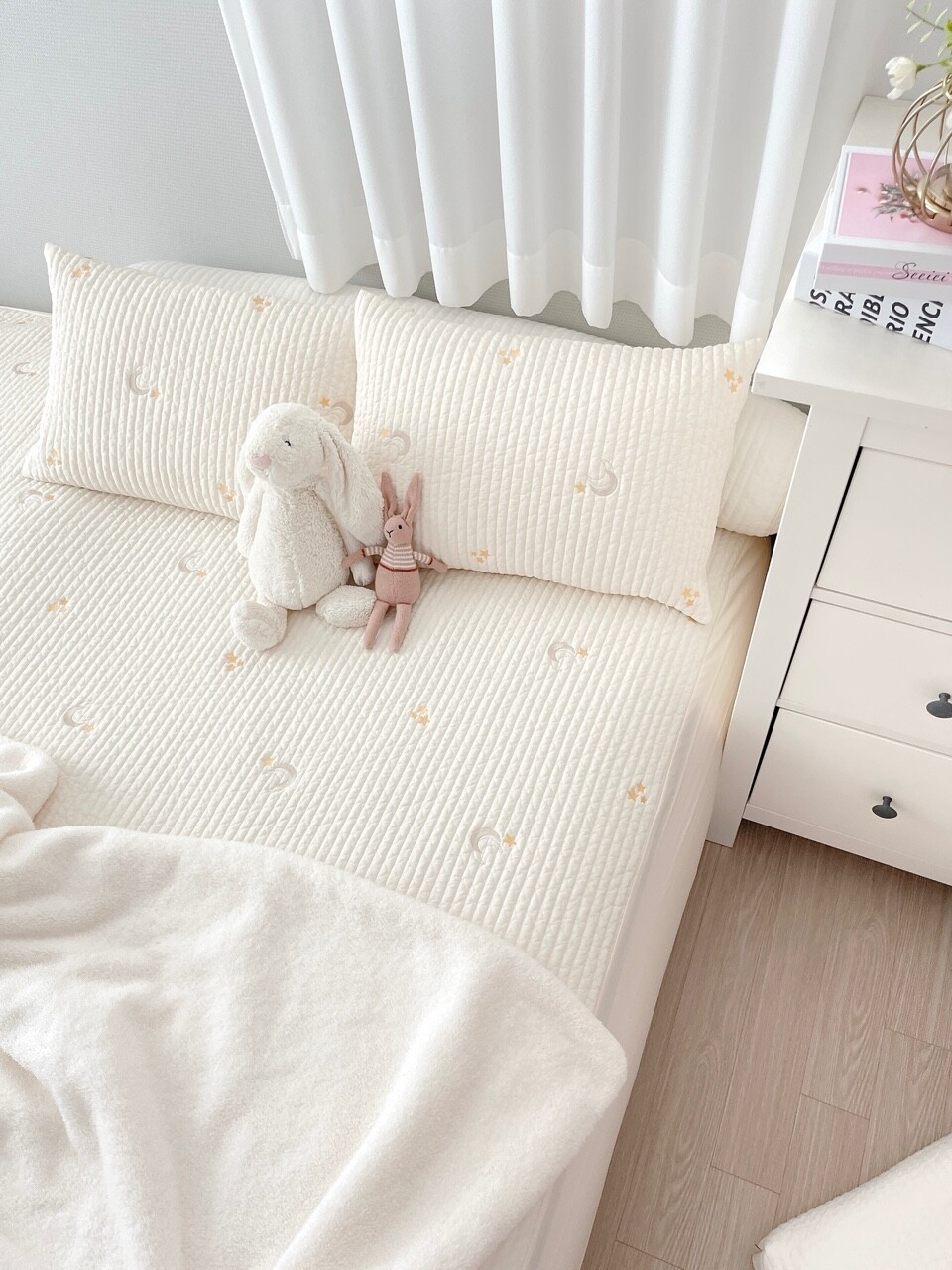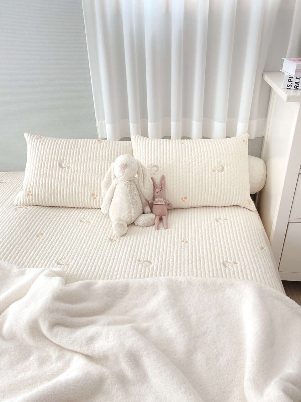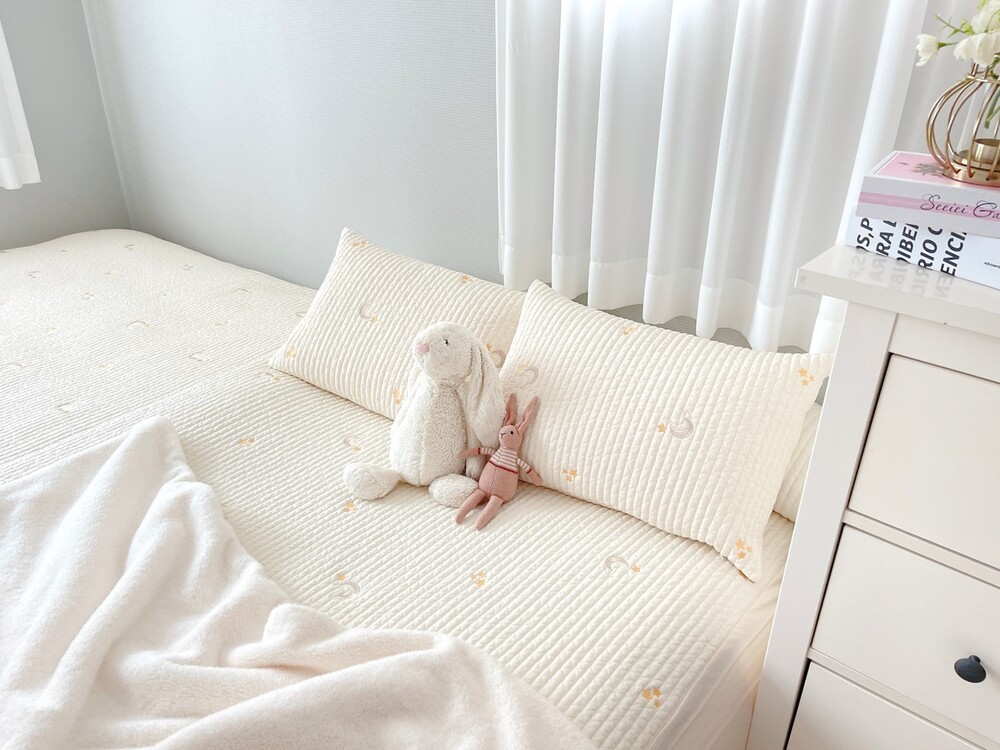 아이보리 바탕에 달과 별 자수가
