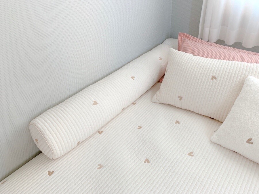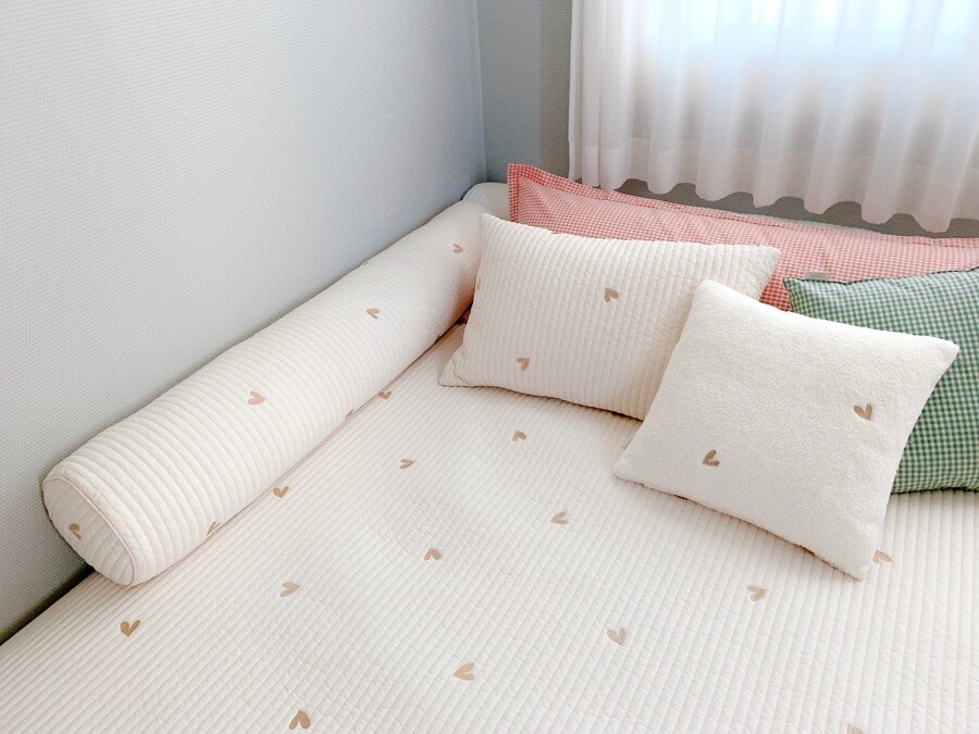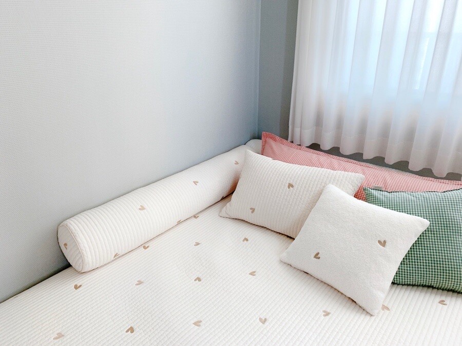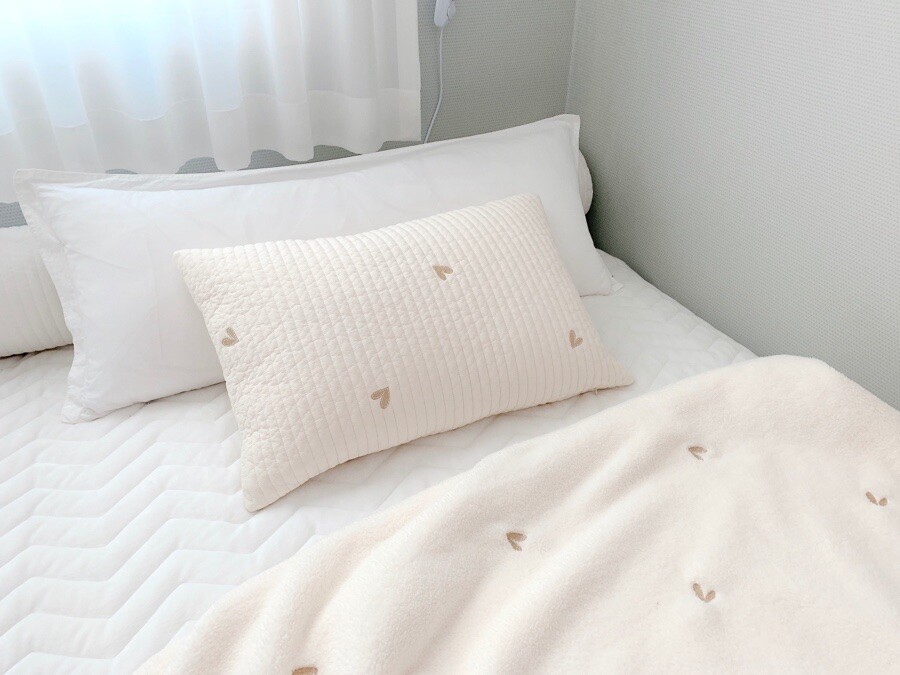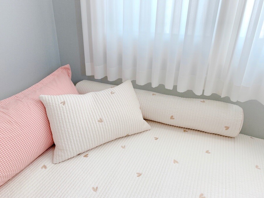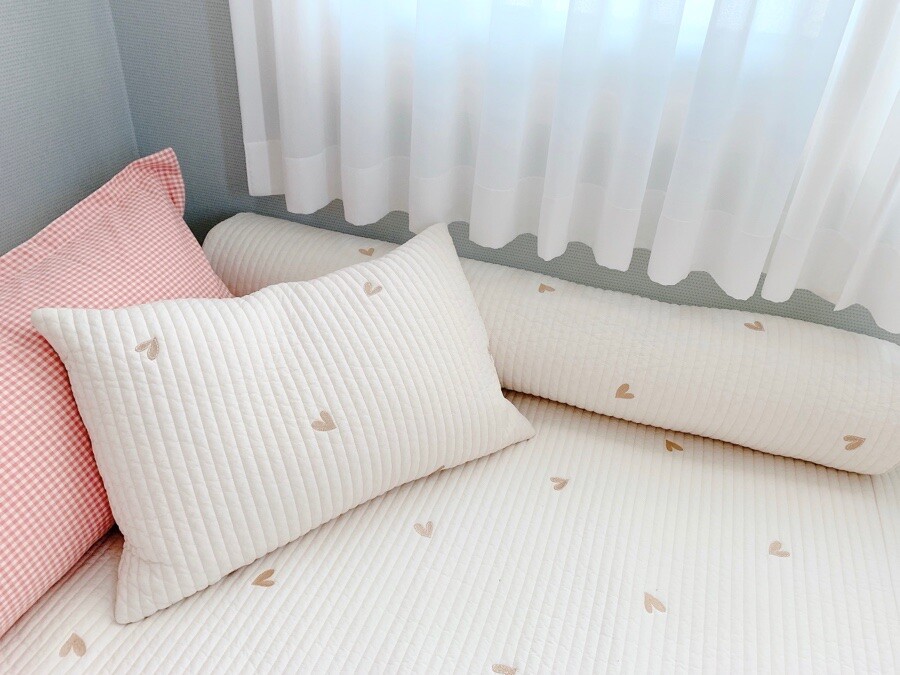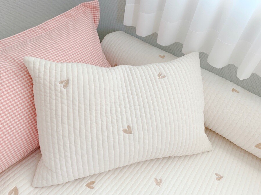 100수 고밀도 줄누빔 하트자수 베개 쿠션 커버