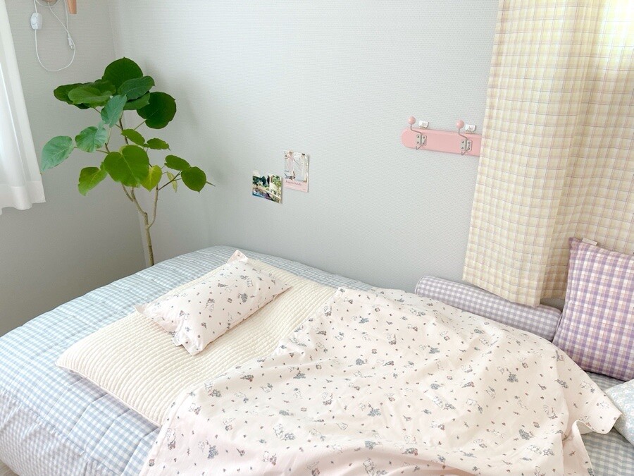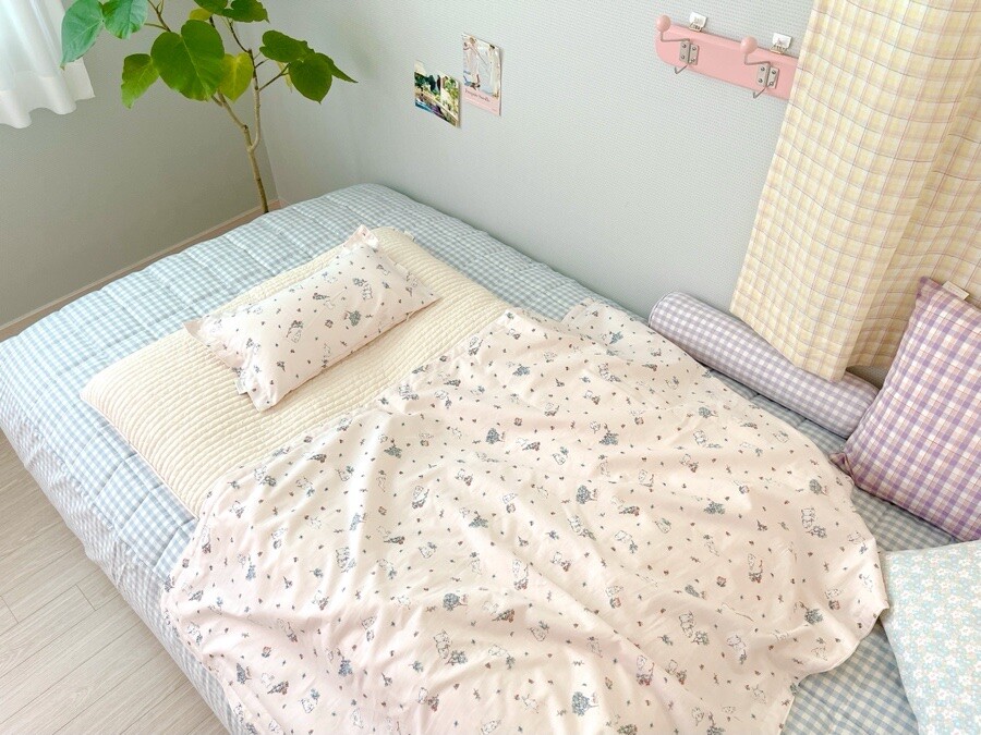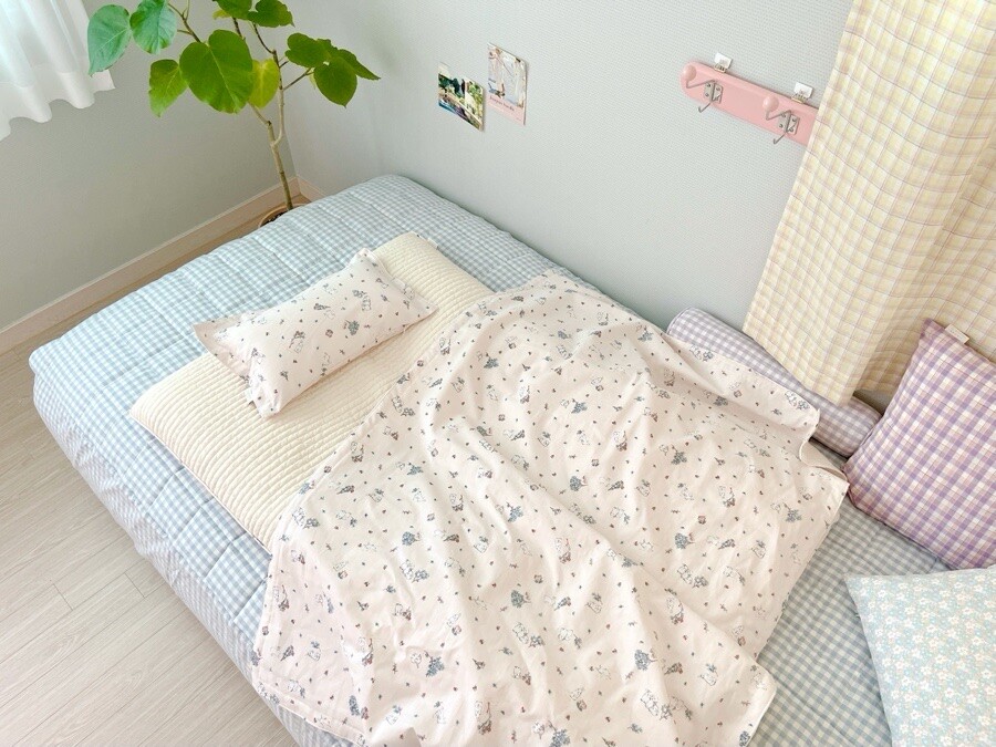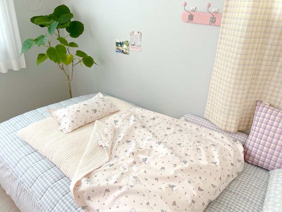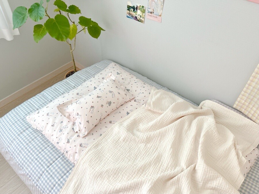 사랑스러운 원단으로 제작된 거즈블랭킷/ 차렵 이불 입니다.