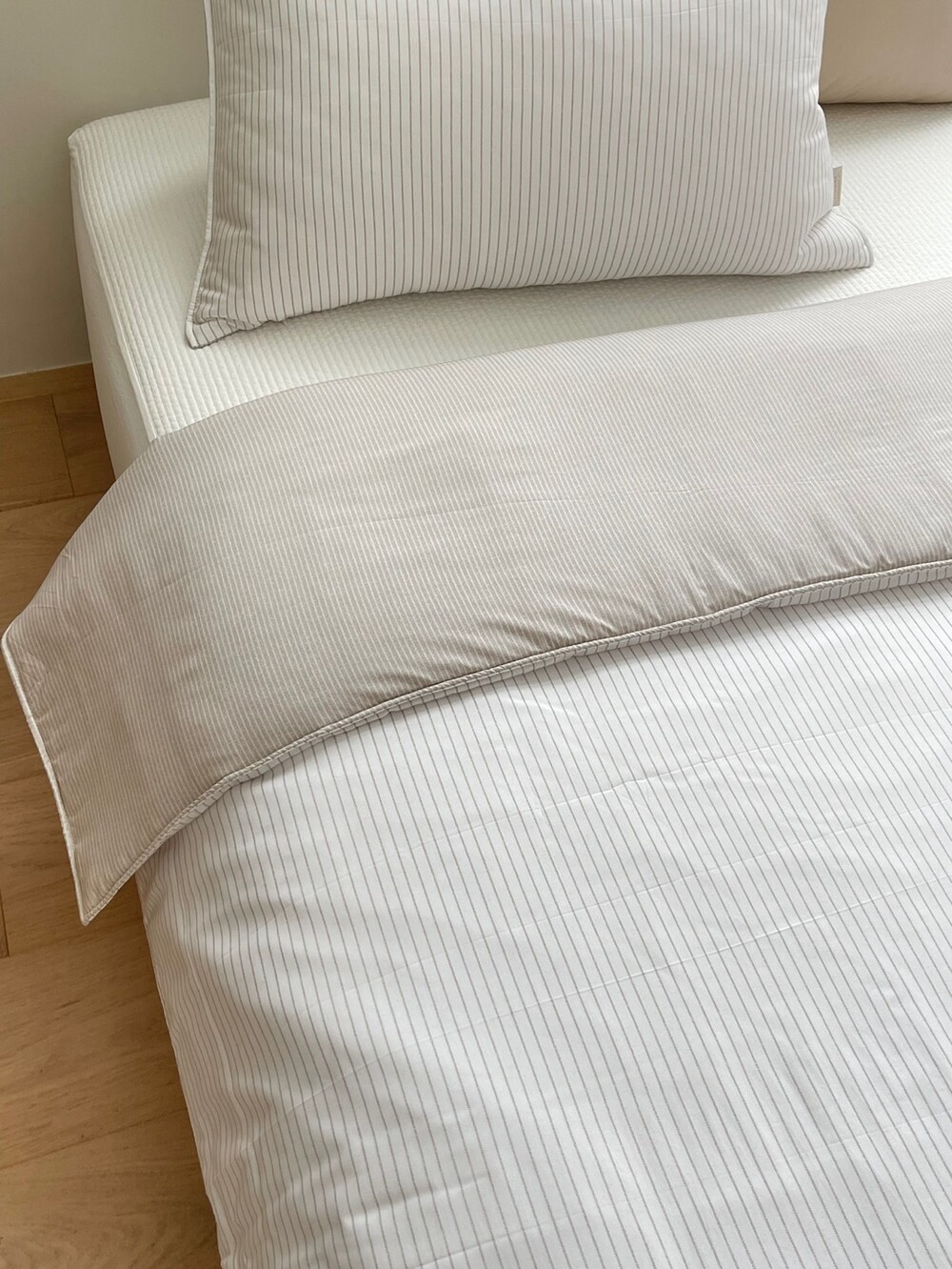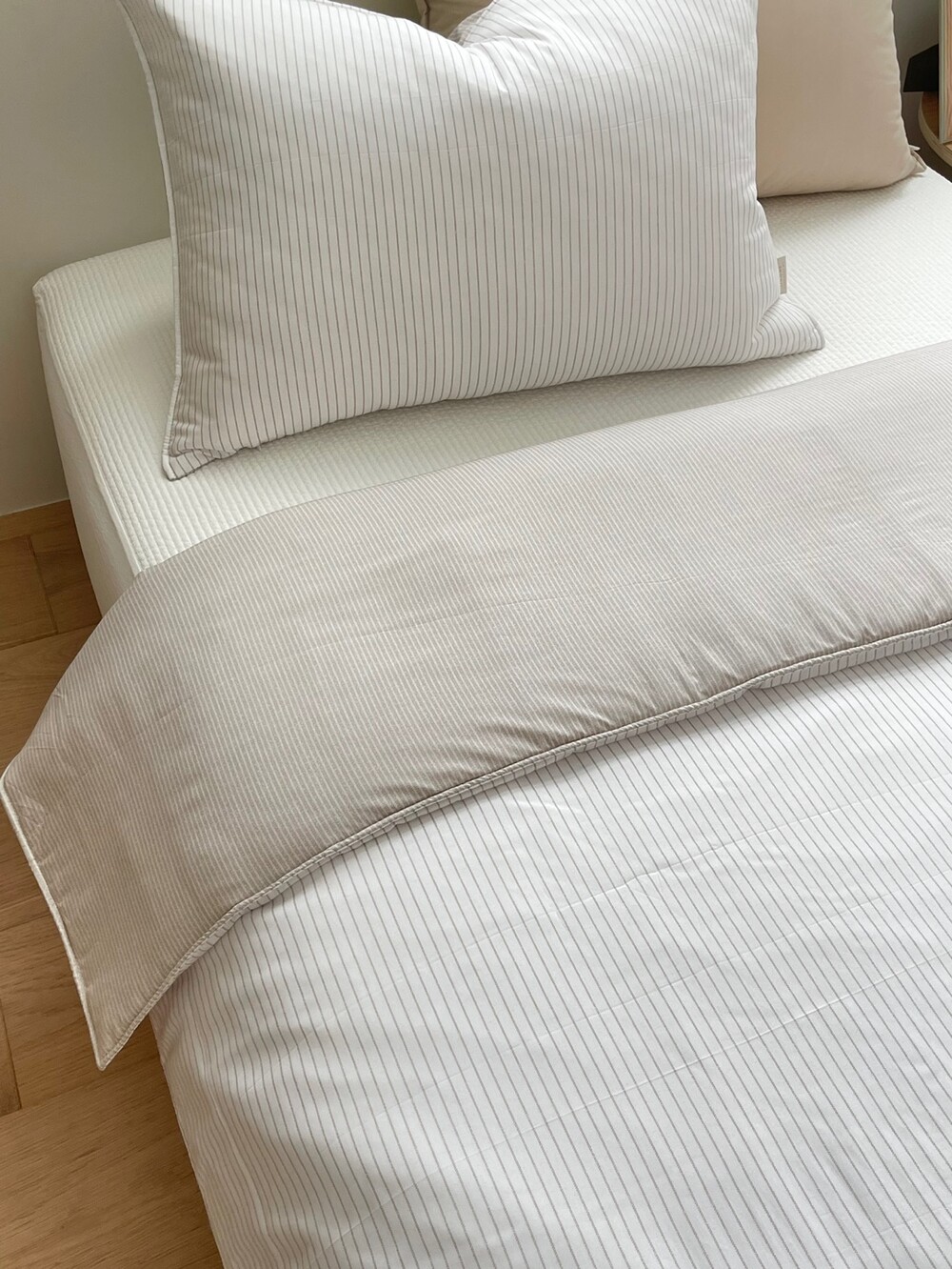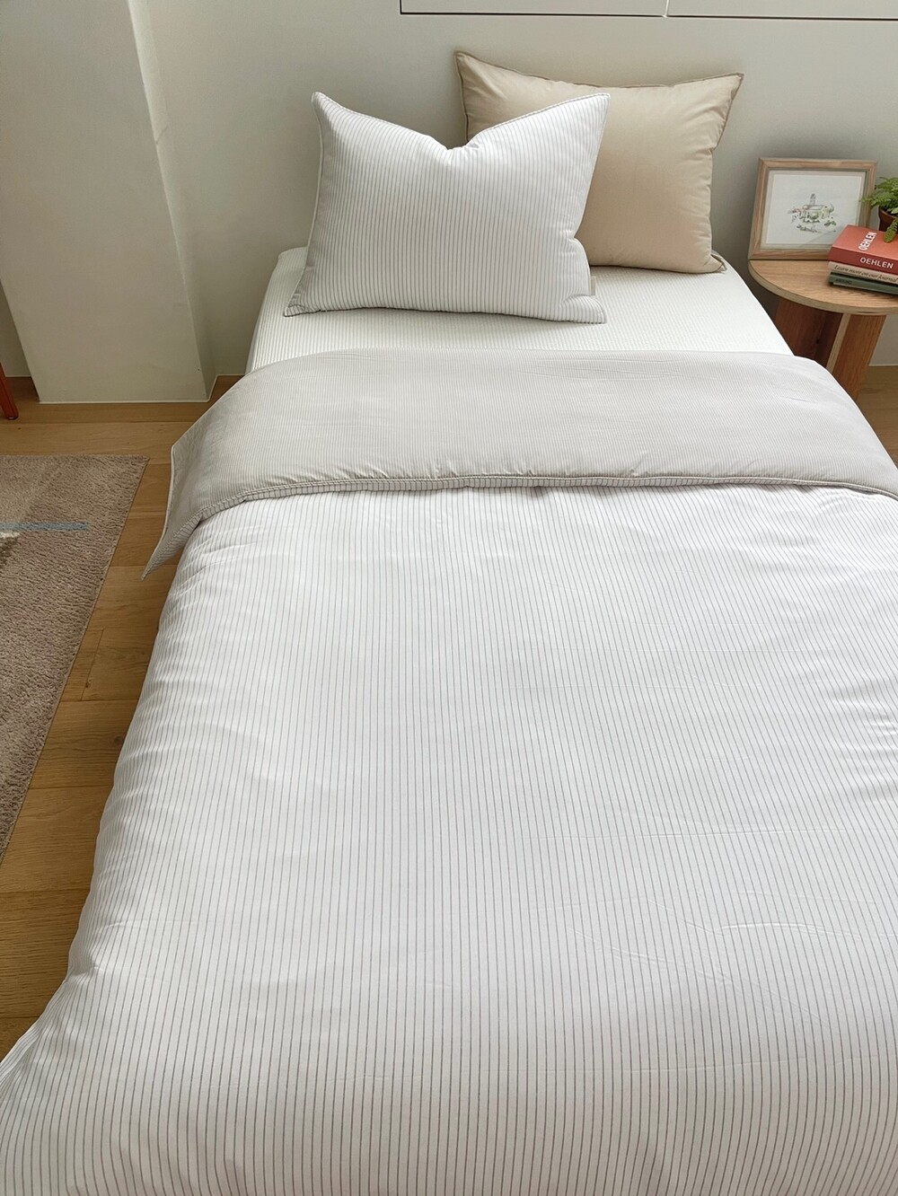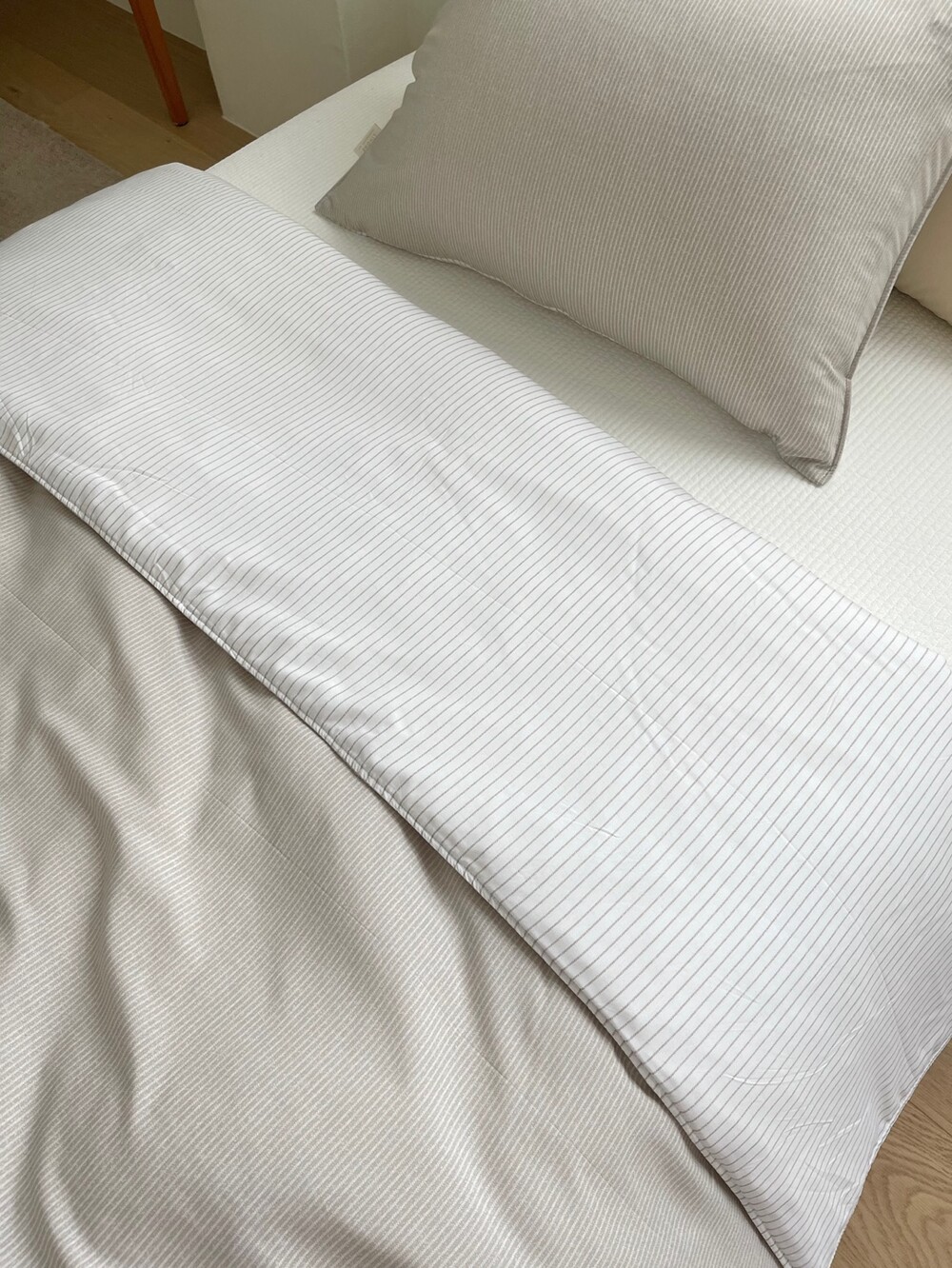 스트라이프 패턴의 이불입니다.