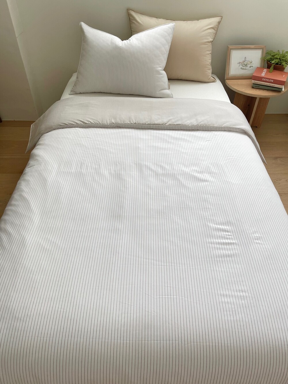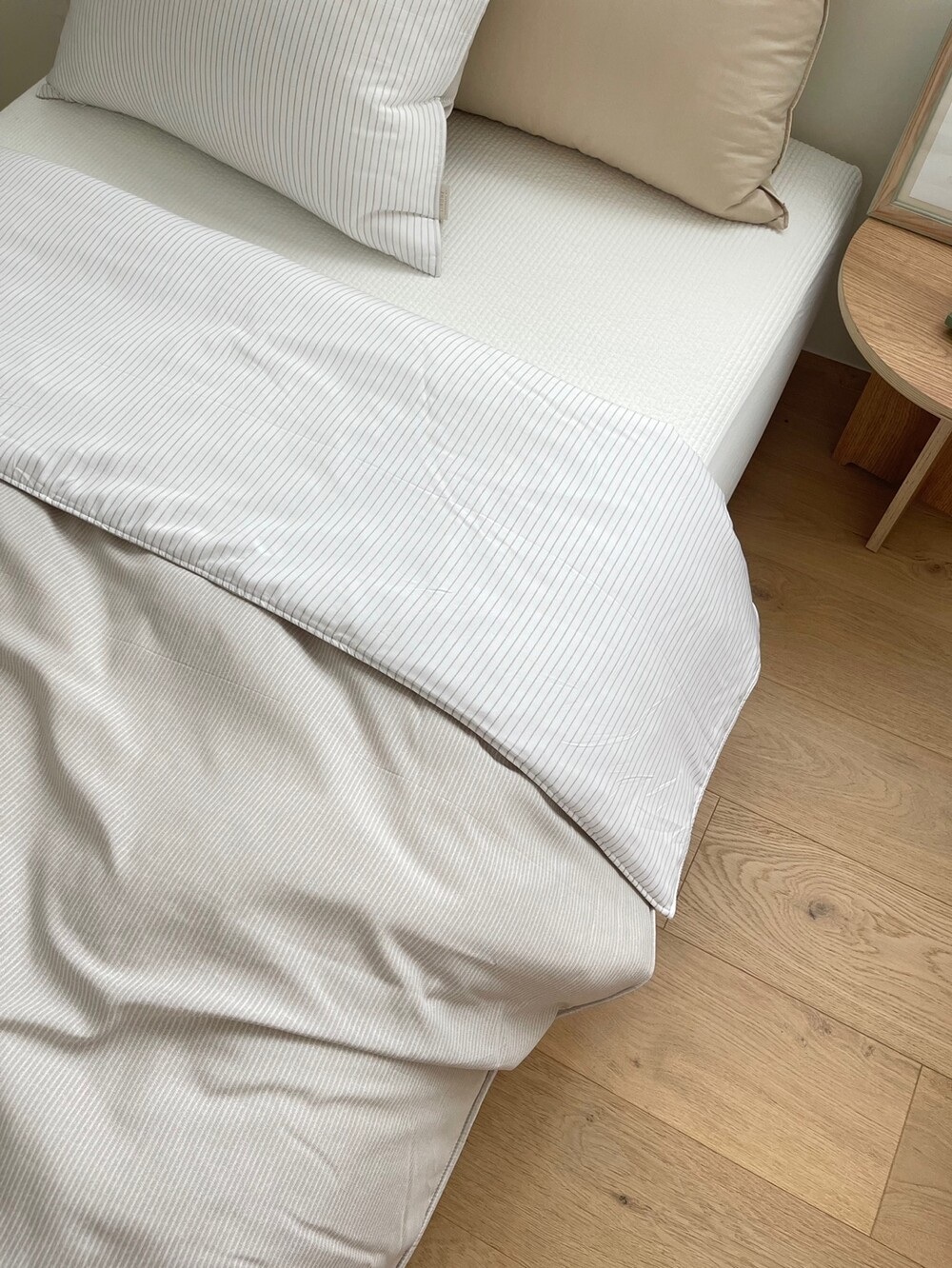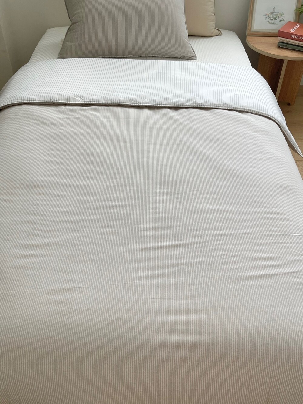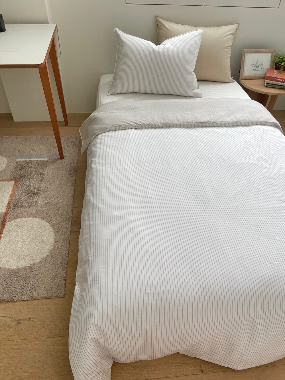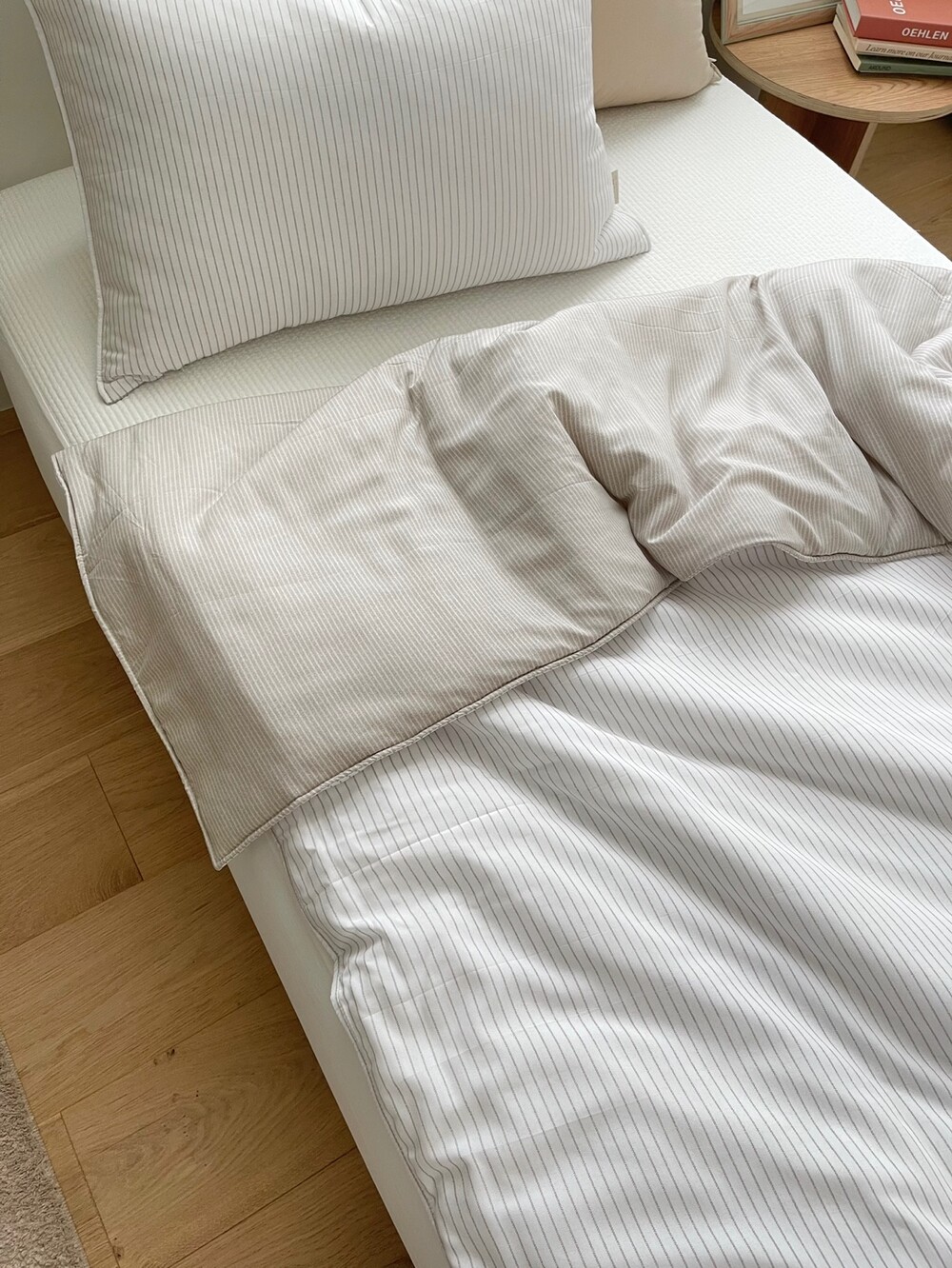 스트라이프 패턴의 이불입니다.