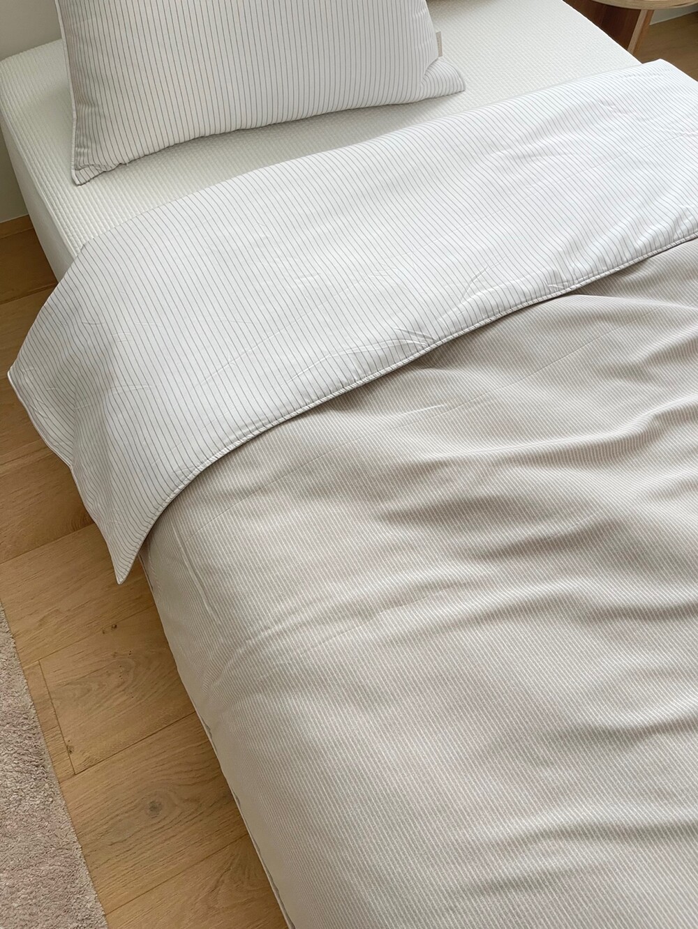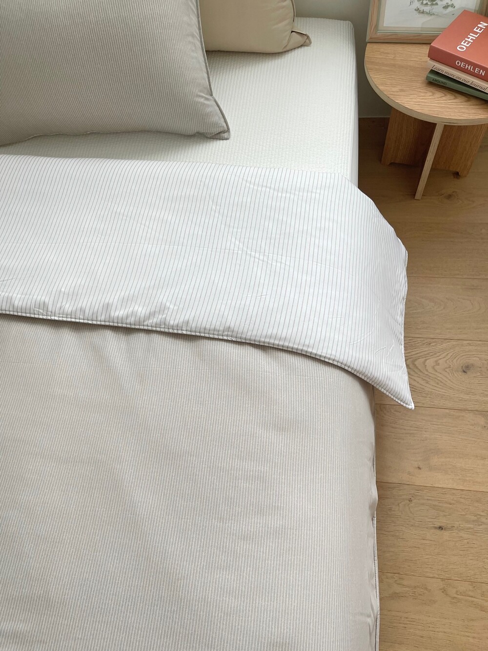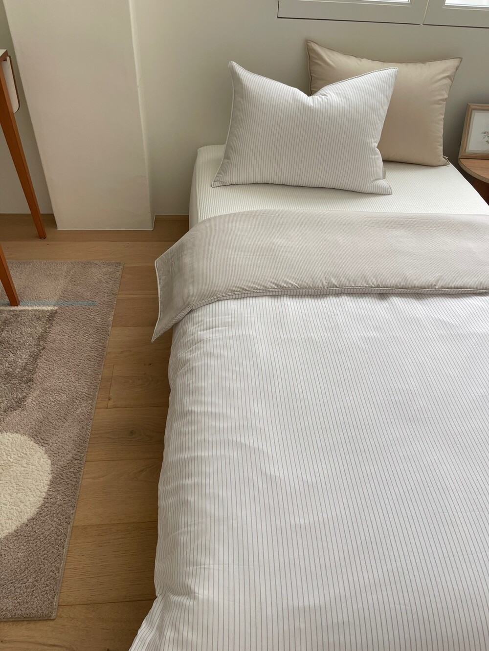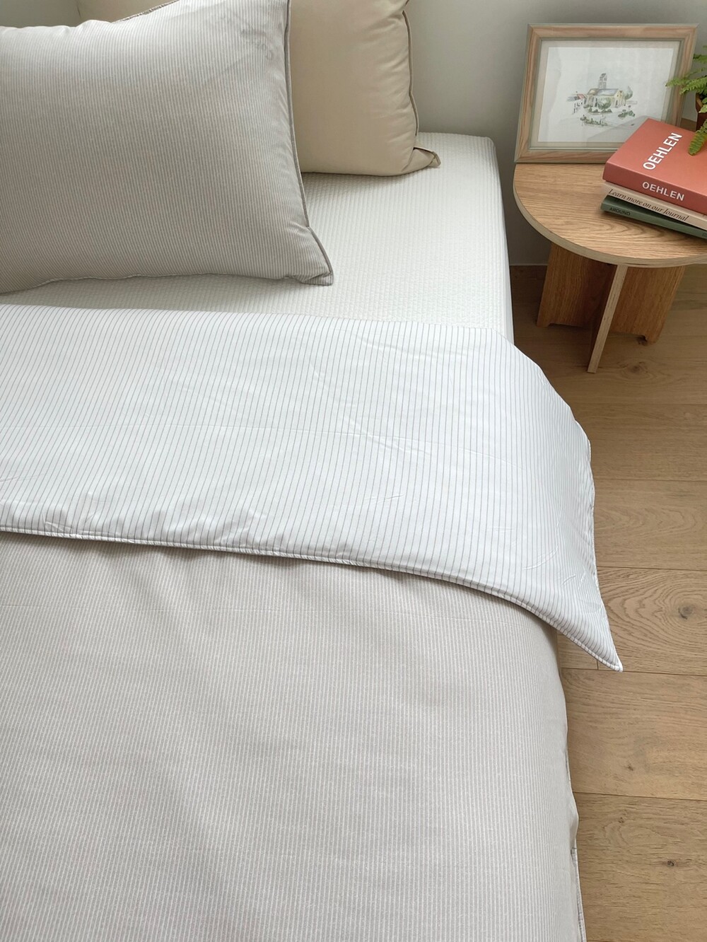 스트라이프 패턴의 이불입니다.