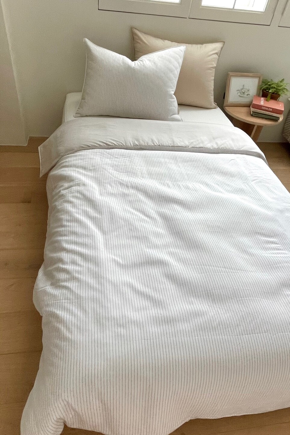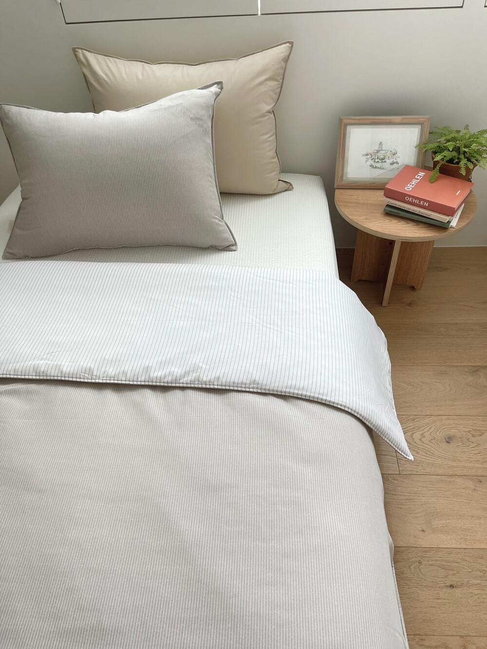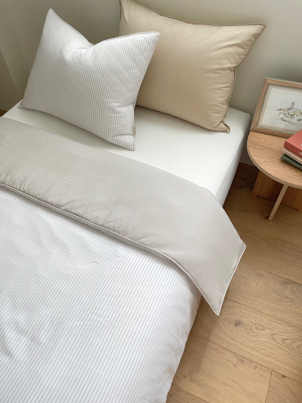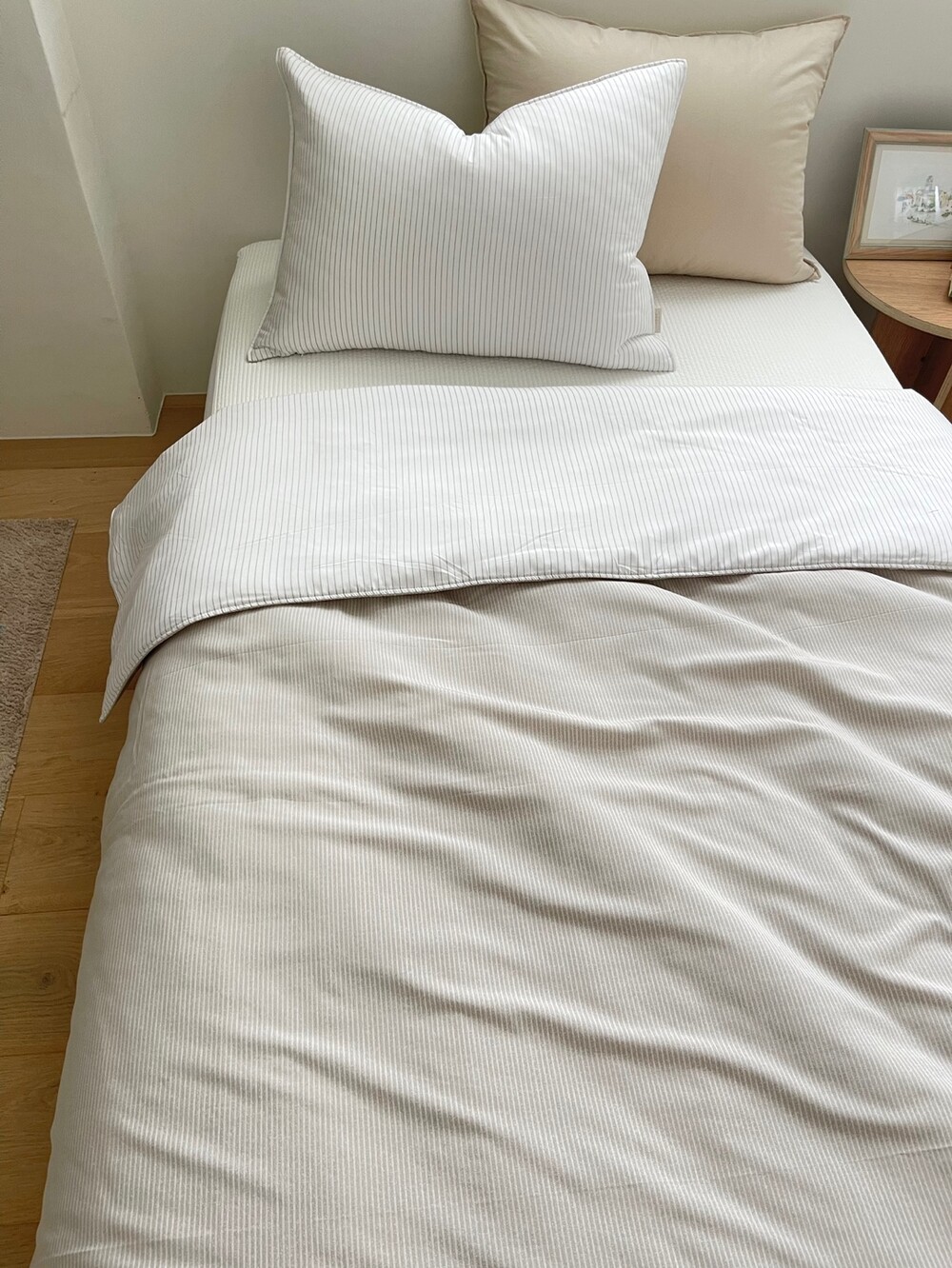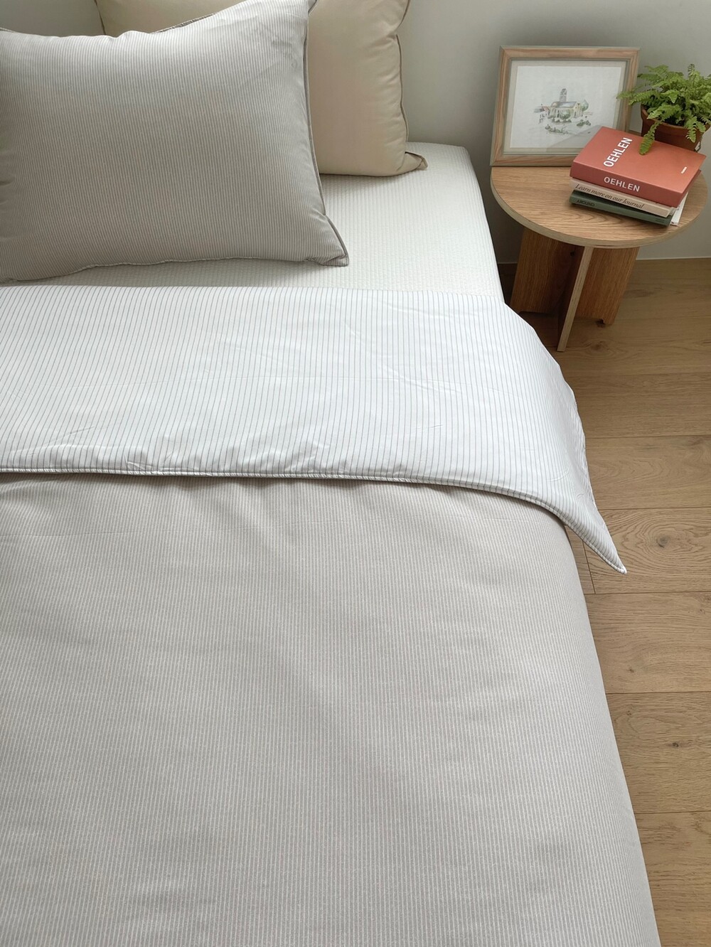 스트라이프 패턴의 이불입니다.
