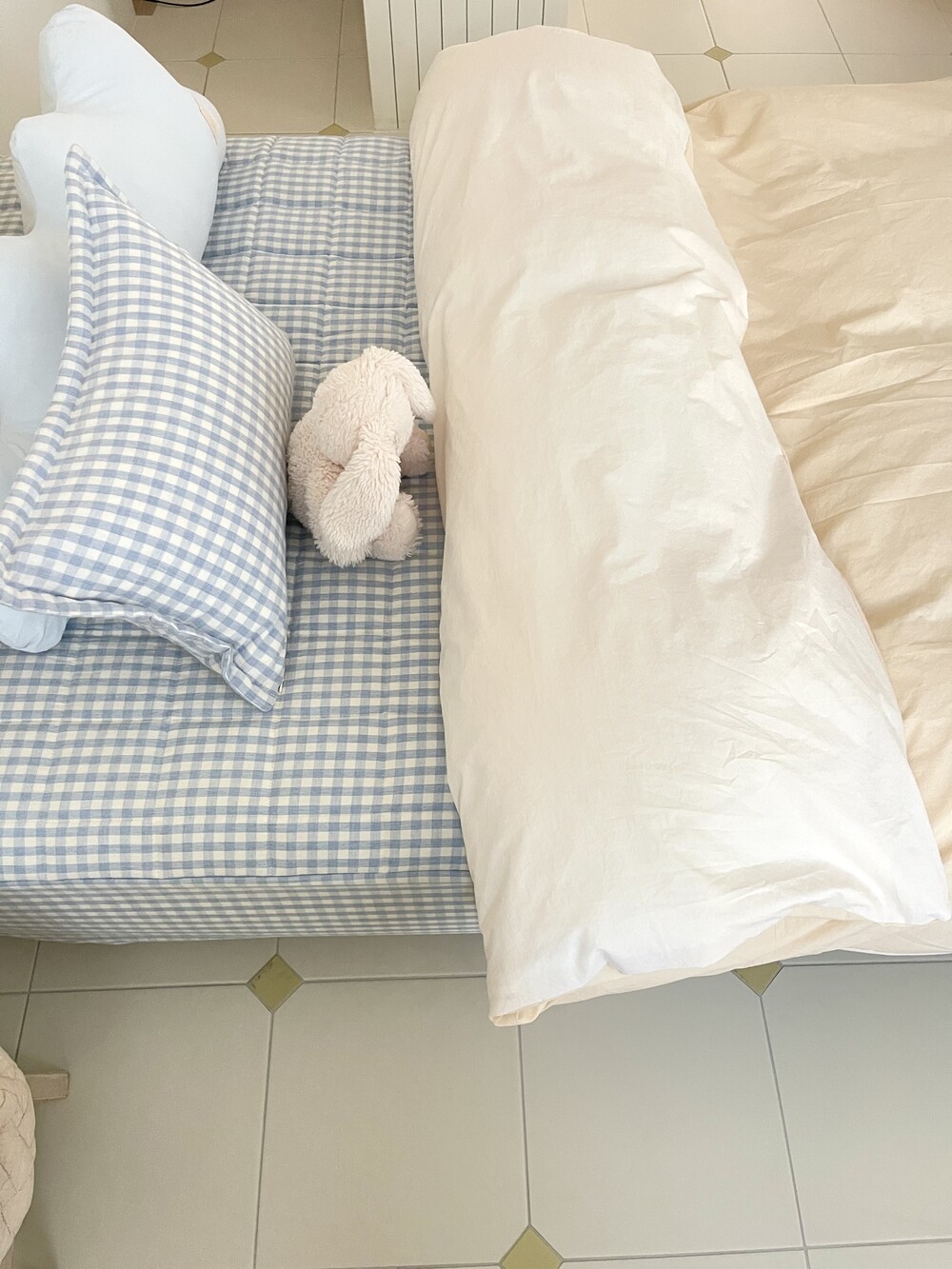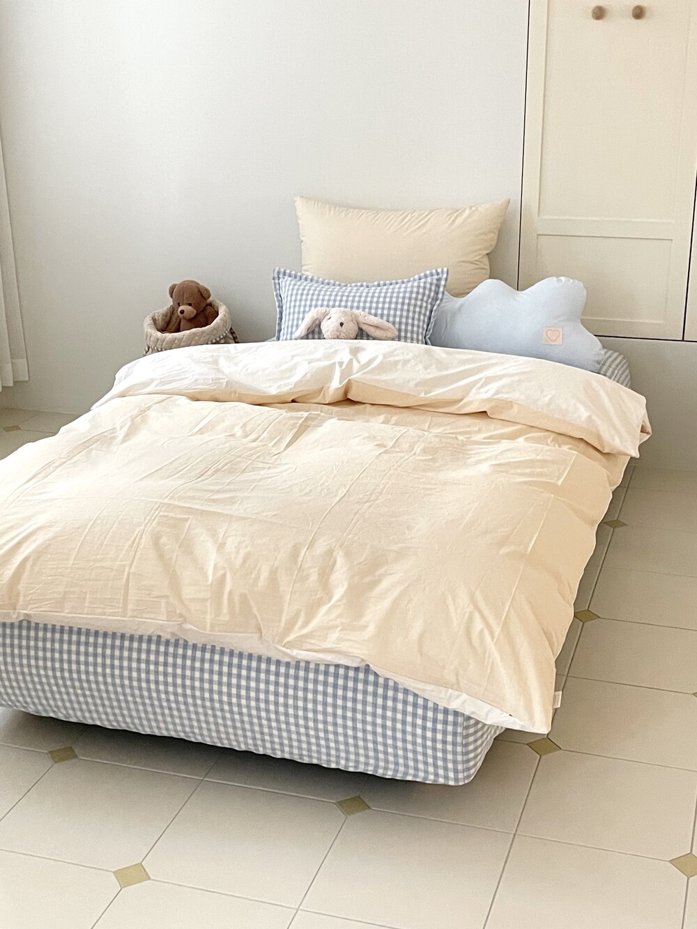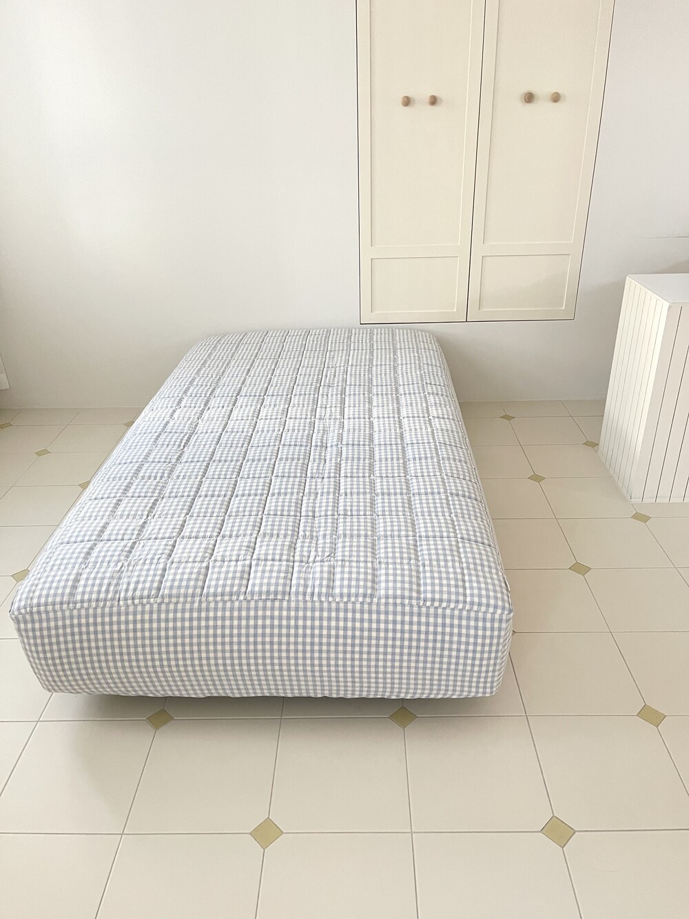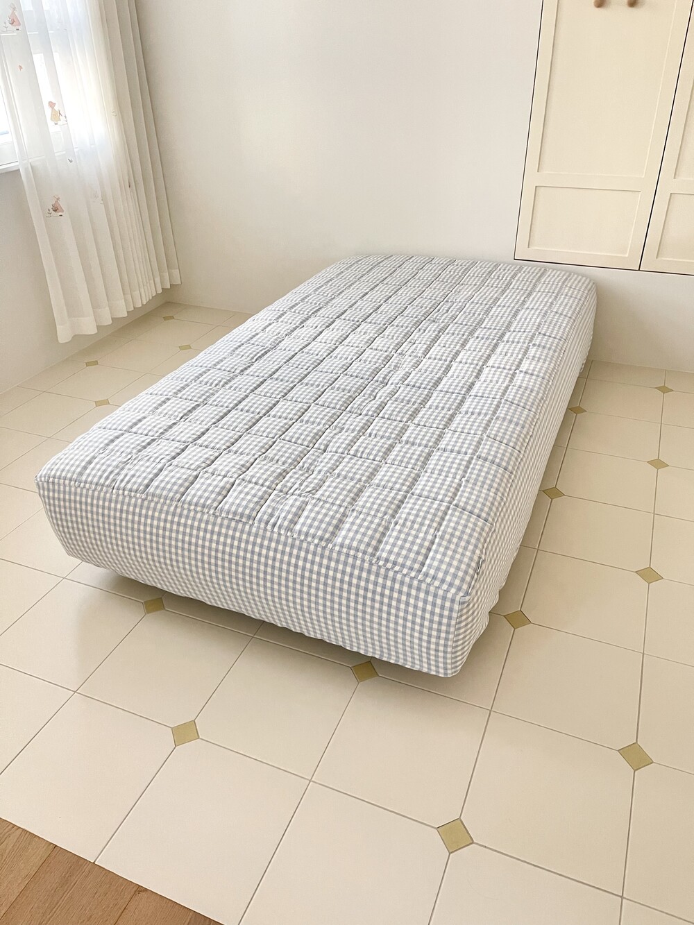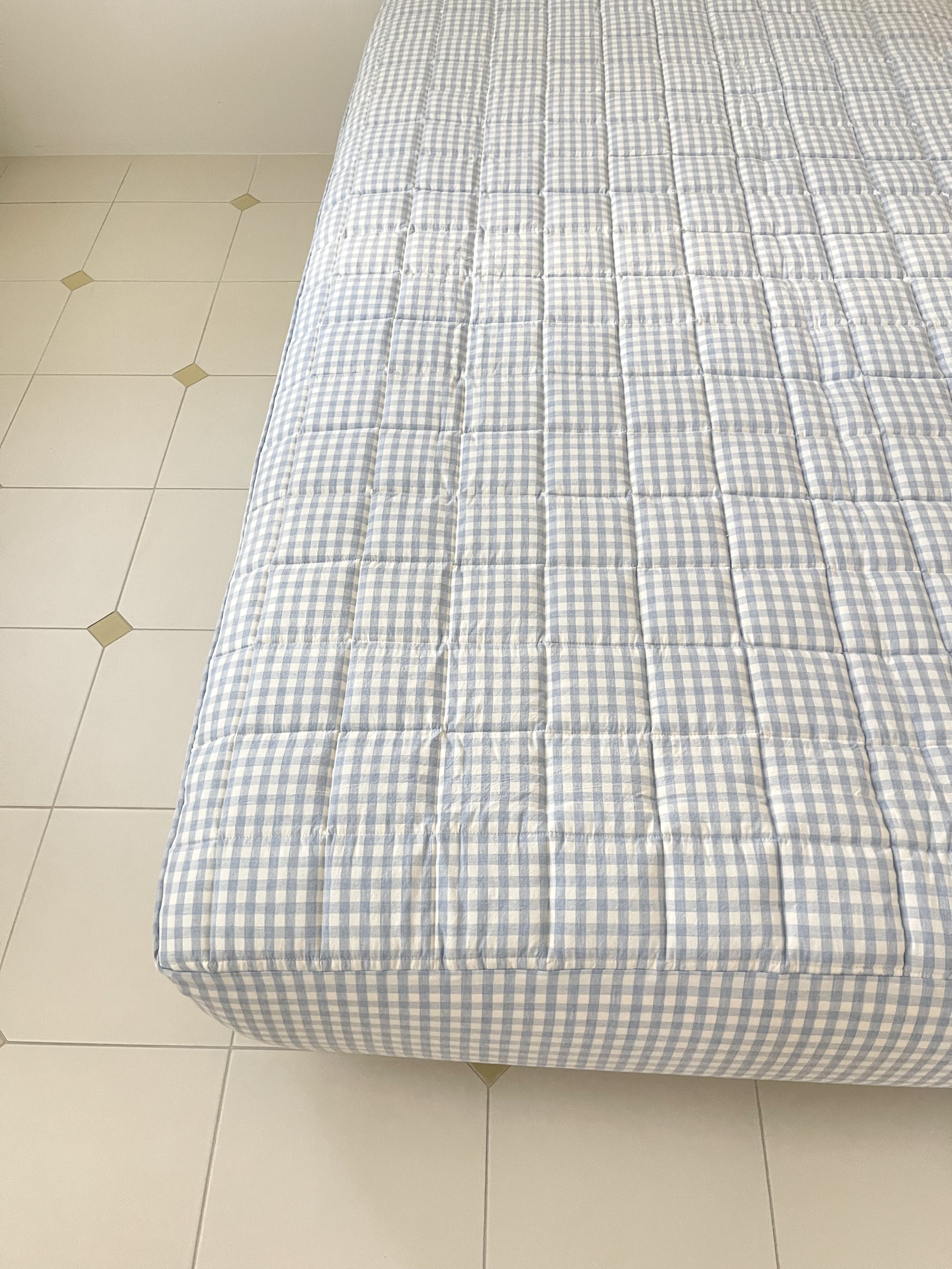 파스텔 체크 누빔 패드 매트리스커버